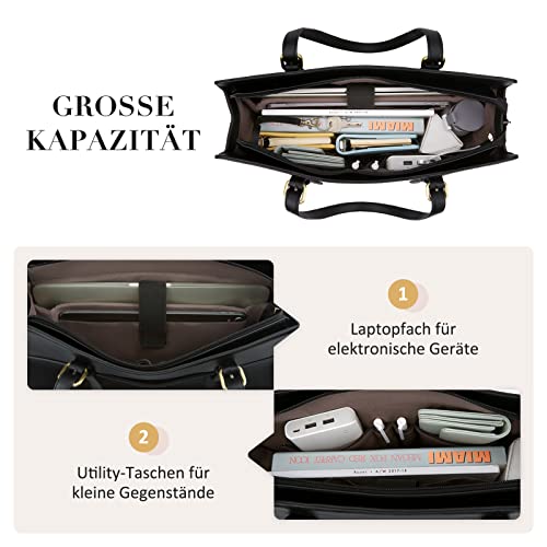 ECOSUSI Laptop handtas dames laptoptas 15,6 inch shopper grote tote bag lederen schoudertassen business werktas