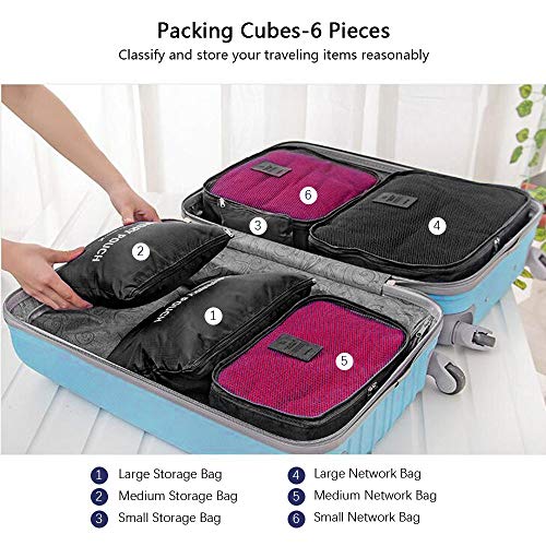 Vicloon bagage-organizer, 6 pcs set koffer organizer bevat 3 x pakkubussen en 3 x opbergzakken, reistassen voor droge kleding, ondergoed, cosmetica en andere accessoires