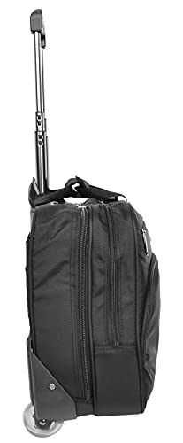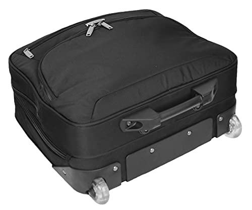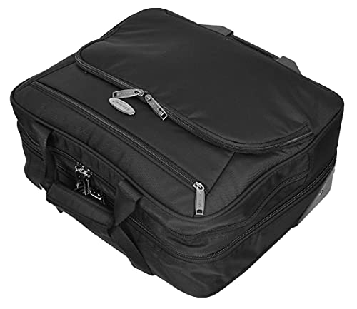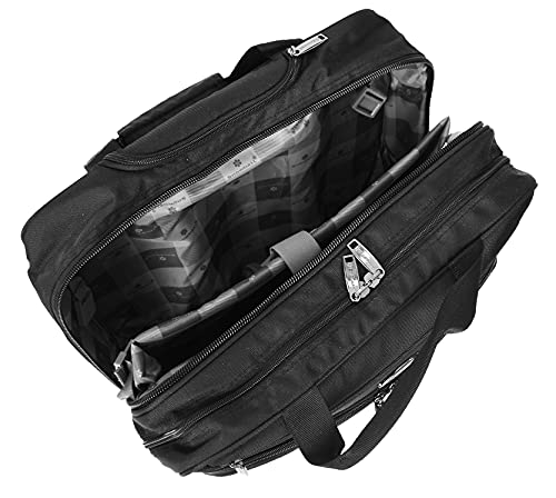 Een opmerkelijke toevoeging in ons pilotkofferassortiment, klassieke traditionele grote aktetas stijl opnieuw ontworpen om een grote verscheidenheid aan items met totaal gemak te dragen. De professionele styling zal zeker de juiste indruk maken, slim eigentijds ontwerp dat oplossingen biedt voor alle soorten zakenreizen, aangewezen vakken voor laptop, tablet, bestandsmappen, doeken en andere reisbehoeftige items met padding bieden bescherming en superieure organisatie. Gemaakt van duurzaam polyester en compleet met hoogwaardige ritsen en fittingen, gladde 2 rechtopstaande wielen basis voor een gemakkelijke glijden langs manoeuvreerbaarheid. Het beschikt over handgrepen aan de bovenkant, ritssluiting rond zelfvergrendelend telescopisch handvat, groot voorvak met ritssluiting met stationaire zakken, een ondiep vak met rits erboven, Twee hoofdvakken met ritssluiting, Binnenin bevindt zich een diep open vak en twee meshed vakken, tweede compartiment bevat een gevoerd laptopgedeelte en open ruimte voor doeken etc, achterzak met rits, volledig gevoerd interieur met een hoogwaardig polyester. Afmetingen: L: 43 x 35 x 21 cm, gewicht 2,73 kg, inhoud 32 liter. GRATIS en snelle levering in het Verenigd Koninkrijk.