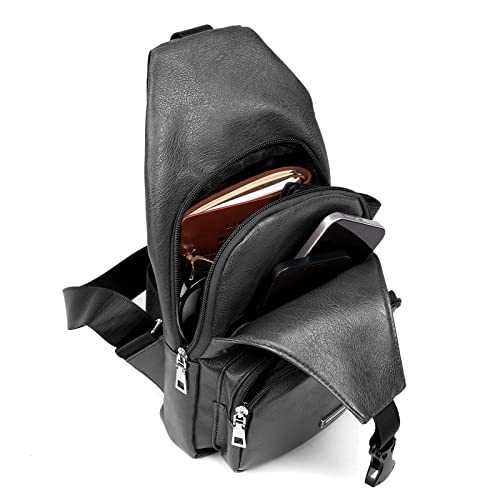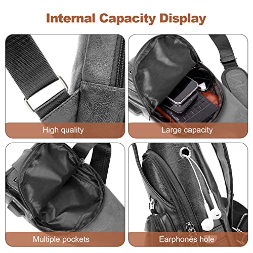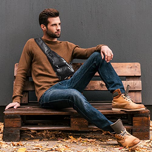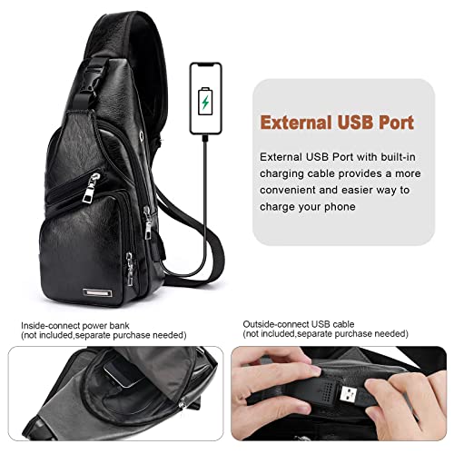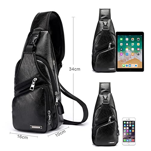 Aucuu Sling Bag, anti-diefstal borstzak, kleine schoudertas, PU-lederen herenrugzak met USB-kabel, vintage crossbody rugzak voor casual, outdoor, wandelen en reizen