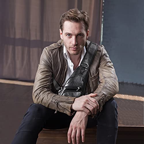 Specification: Aucuu Sling Bag leren borsttas, anti-diefstal borsttas, kleine schoudertas, herenrugzak met USB-kabel, vintage crossbody schoudertas voor casual outdoor wandelen reizen – bruin/zwart