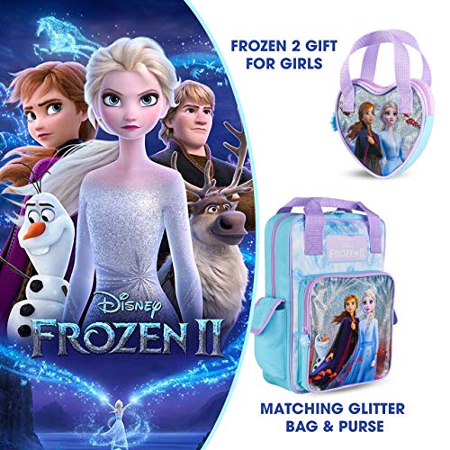 FROZEN CADEAU VOOR MEISJES: De Frozen 2 meisjes tas en rugzak is voorzien van Elsa de sneeuwkoningin, Anna en Olaf van Frozen 2. De bijpassende meisjesportemonnee kan worden gebruikt om kleine schatten, munten, speelgoed te dragen en kan worden gebruikt naast de Frozen 2 Disney rugzak. De tas fungeert als een kleine Frozen handtas met een glitter design en transparante afbeelding – perfect voor meisjes die houden van Frozen 2, Olaf, Frozen mode en sprankelend, glitter Frozen 2 accessoires.