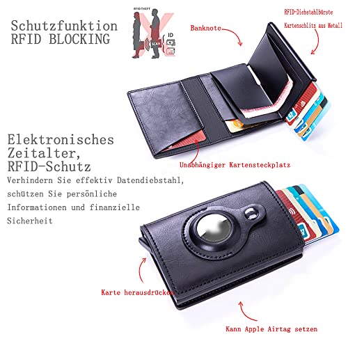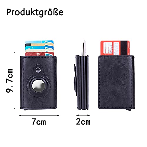 ShengOu Portefeuille AirTag, Airtag Wallet Holder, AirTag portemonnee mannen, Smart AirTag portemonnee, Airtag Smart Wallet, Portemonnee Smart Card Case, Nimalist Airtag Wallet Leather, zwart