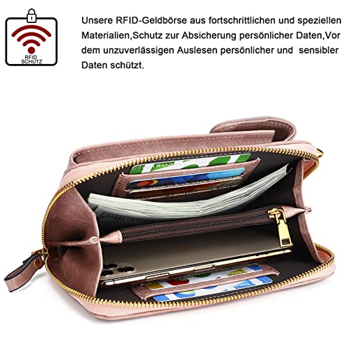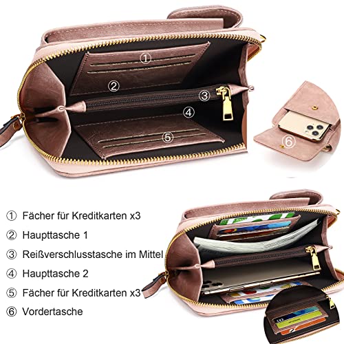 YOVIEE Mobiele telefoonhoes om om te hangen, RFID-portemonnee voor dames, mobiele telefoon, schoudertas, dames, veganistisch leer, telefoontasje met portemonnee om om te hangen, voor mobiele telefoons onder 6,5 inch