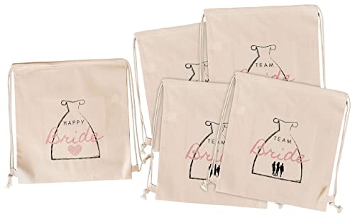 FremiBag Happy Bride & Team Bride stoffen tassenset – gymtas voor het vrijgezellenfeest van katoen