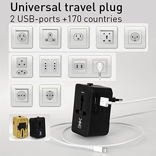 Dutch Quality – Universele wereldstekker met 2 USB poorten voor 200+ landen, reisstekker, reisadapter, wereldreis, UK Engeland/USA Amerika